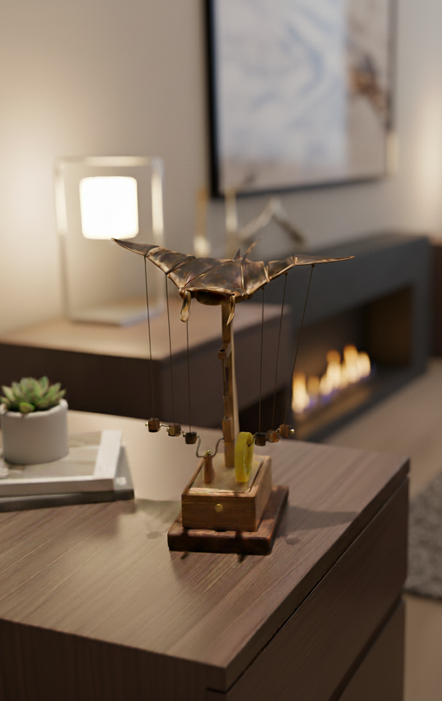 Electric Hand-Carved Wooden Manta Ray Kinetic Art Sculpture